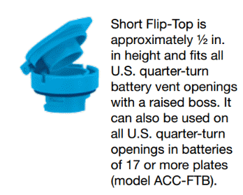Self-draining: The Flip-Top also avoids the problems common to screw caps: acid dripping on top of the battery where the screw caps are placed during filling. With the Flip-Top, any liquid in the lid stays in the lid and drains back when the lid is snapped shut.